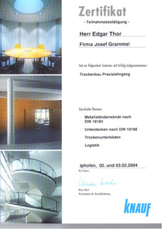 - Generell können Sie von uns erwarten, dass wir die Handhabung neuester Maschinen und Einsatztechniken durch regelmäßige Besuche von Fachmessen und durch zusätzliche Weiterbildung vertiefen.